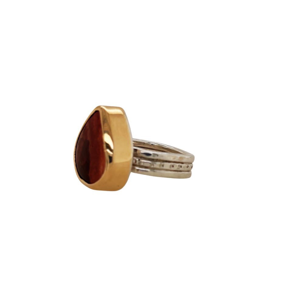 Sterling silver Mexican Opal Ring with 14k yellow gold bezel.